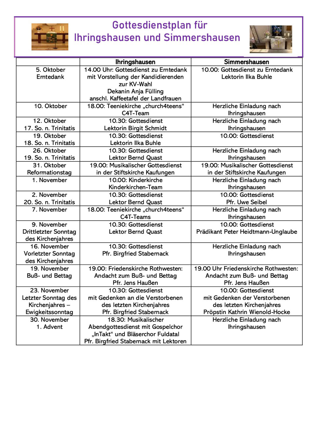 Seit dem 1. Januar 2025 sind die Gottesdienste in Simmershausen in eine neue Liturgie eingebettet.